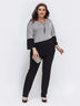 Универсальный комплект из трикотажного джемпера и брюк. Джемпер с цельнокроеным рукавом и асимметричным низом. Брюки с эластичной деталью в поясе выполнены с карманами в боковых швах для удобства в носке. Украшение в комплекте.