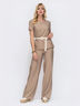 Повседневный брючный комплект из тонкого льна с жатым эффектом. Прямая блузка с коротким рукавом и небольшими разрезами по бокам. Широкие брюки-клёш с эластичной деталью на спинке. Для удобства сзади и в боковых швах предусмотрены карманы. Костюм прекрасно подойдет для ежедневного посещения офиса, деловой встречи и даже для прогулки по окончанию рабочего дня. Ремень в комплект не входит.