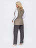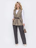 Стильный комплект-тройка. Блузка прямого кроя с полоской контрастного цвета по рукаву. Брюки со стандартной посадкой. Жилет прямого кроя с карманами по бокам, завязывается на кулиску по талии.