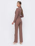 Брючный костюм с двубортным приталенным жакетом без лацканов.