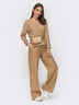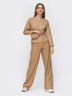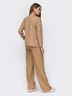 Уютный брючный комплект из костюмной ткани. Кофта свободного кроя с удлиненной спинкой и невысокими разрезами по бокам. Брюки прямого кроя с высокой посадкой, застёгиваются на молнию сбоку. Для удобства в носке предусмотрены прорезные карманы в боковых швах.