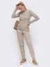 Вязаный комплект из свитера и брюк. Верх с широкими косами, низ с карманами и резинкой по низу штанин.