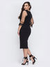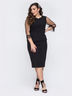 Черный элегантный комплект из креп-дайвинга. Блузка с прозрачным рукавом ¾ с отделкой из искусственных перьев. На спинке застёжка-молния по всей длине. Облегающая юбка с разрезом сзади и эластичной резинкой с люрексом в поясе.