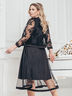 Элегантный комплект из костюмной ткани: платье + накидка. Платье с расклешенной юбкой, дополненное мягким фатином. Застегивается на молнию сбоку. Накидка из тонкой сетки с бархатным рисунком, без застежек. Отлично подойдет для создания яркого образа на вечер.