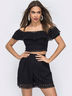 Летний комплект из прошвы топ+шорты. Топ с ластичной деталью по горловине. Шорты с вместительными карманами в боковых швах. Застёгиваются на молнию по спинке.