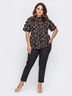 Стильный комплект-двойка. Блузка свободного кроя, застёгивается на кнопки по спинке. Брюки зауженные книзу с эластичной деталью на талии. По бокам предусмотрены карманы.
