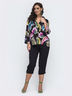 Стильный комплект из дышащего штапеля. Принтованная блузка свободного кроя с рукавом «летучая мышь» и нагрудным карманом. Спинка в изделии удлинена. Укороченные брюки с карманами и эластичной резинкой на спинке.