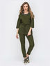 Однотонный брючный комплект с бусинами. Верх прямого кроя с кулиской на талии. Брюки с отстроченными стрелками, на резинке.