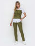 Стильный брючный комплект из тонкого хлопка. Рубашка в стиле сафари выполнена из комбинированной ткани, застёгивается на пуговицы спереди. Комплект дополнен поясом в тон изделия. Брюки на резинке.