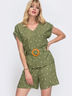 Летний комплект-двойка из дышащего лён-штапеля в горошек. Блузка прямого кроя с треугольным вырезом и разрезами по бокам. Дополняет образ тканевый пояс с пряжкой в комплекте. Шорты с высокой посадкой и карманами в боковых швах. Застегиваются на молнию и пуговицу.