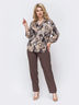 Стильный комплект-двойка. Блузка свободного кроя с V-образным вырезом горловины. Рукав ¾ зафиксирован шлёвкой. Брюки с эластичной деталью в поясе. Для удобства предусмотрены по бокам карманы.