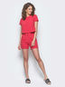 Стильный и легкий комплект блузка+шорты. Верх изделия свободного кроя, немного укорочен. Застежка в виде контрастных кнопок на спинке во всю длину. Шорты с завышеной посадкой и удобными карманами по бокам. Застегивается изделие на кнопки спереди.