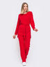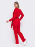 Повседневный комплект из тонкого фактурного трикотажа. Туника свободного кроя с удлиненной спинкой. Широкие брюки на резинке. Пояс в комплекте.