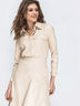 Трендовый комплект из эко-кожи. Рубашка c функциональной планкой с пуговицами на полочке дополнена клапанами в качестве декора. Юбка-миди расклешенного кроя выполнена с карманами по бокам, застегивается на молнию и пуговицу.