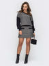 Повседневный комплект: свитшот со спущенной линией плечевого шва и юбка-мини с накладными карманами на полочке.