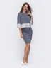 Женственный комплект-двойка из трикотажа джерси. Топ свободного кроя с рукавом ¾, дополнен контрастным кружевом. Юбка-карандаш без застежек.