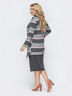Уютный комплект на каждый день в прохладную погоду. Облегающее платье с длинным рукавом. Полосатый кардиган асимметричного кроя с воротником апаш. Длина рукава регулируется шлёвками. На вороте предусмотрена застёжка-пуговица.