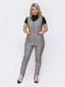 Практичный комплект из костюмной ткани в полоску. Жилет с накладными карманами и функциональной молнией. Кулиска на спинке создаёт приталенный силуэт. Зауженные брюки с карманами по бокам и эластичной резинкой в поясе.