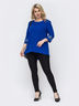 Комплект с облегающими брюками из эластичного бенгалина и контрастной блузкой из костюмной ткани с гипюровыми вставками на рукавах и треугольном вырезе на спинке. Блузка выполнена со складками сзади.