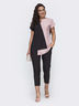 Летний брючный комплект. Блузка с контрастной вставкой. Брюки с эластичной деталью по талии и карманами по бокам.