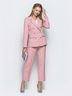 Офисный комплект-двойка из костюмной ткани. Двубортный пиджак приталенного силуэта с отложным воротником. Укороченные брюки прямого кроя со стрелками застегиваются на молнию и пуговицу спереди.