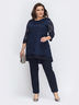 Женственный комплект з креп-дайвинга со вставками из гипюра. Верх – туника с удлиненной спинкой. Низ – брюки с эластичной деталью в поясе, дополненные карманами в боковых швах для удобства в носке.