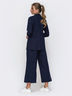 Стильный комплект с брюками-кюлотами и неструктурированным жакетом. Жакет с накладными карманами на полочке и фиксированными патиками на рукавах. Укороченные брюки с посадкой на талии дополнены карманами по бокам и поясом из основного материала.