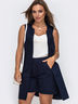 Практичный комплект-двойка из хлопковой ткани. Удлинённый жилет с декоративными клапанами, без застёжек. Шорты со стандартной посадкой и пришитыми подворотами. Пояс на спинке присобран на резинку. В боковых швах предусмотрены карманы.