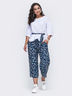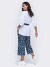 Летний брючный костюм. Укороченные брюки с эластичной деталью по талии. Блузка свободного кроя с удлиненной спинкой. Пояс из основной ткани пришит на спинке.
