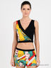 Детали: Оригинальный топ, подол на резинке из трикотажа, средней толщины лямки, вырез V-образный с запахом, стильный принт на полочке, стильные шортики пояс на завязочке.