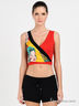 Детали: Оригинальный топ, подол на резинке из трикотажа, средней толщины лямки, вырез V-образный с запахом, стильный принт на полочке, стильные шортики пояс на завязочке.