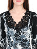 Детали: полочка и рукава декорированы вышивкой и стразами, юбка на трикотажной резинке дополнена гипюровым кружевом по низу