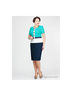 Очаровательный костюм, выполненный из плотного трикотажа состоит из двух предметов: жакет и юбка. Жакет приталенного покроя с короткими рукавами и округлым вырезом горловины. Спереди присутствует застежка на пуговицы. Юбка классического покроя "карандаш" имеет стандартную посадку в талии. Отличный вариант на каждый день.