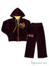Велюровой костюм на молнии с капюшоном и карманами. Украшен вышивкой одного цвета с подкладкой. Капюшон затягивается золотистым шнурком.Рукава на манжетах. Брюки классического силуэта.