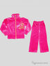 Велюровый костюм с золотой вышивкой и молнией золотого цвета. Воротник стойка, рукава на манжетах. Классический покрой брюк.