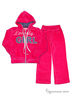 Велюровой костюм на молнии с капюшоном и карманами. Украшен вышивкой одного цвета с подкладкой. Капюшон затягивается серебристым шнурком. Рукава на манжетах. Брюки классического силуэта.