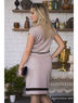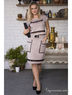 Костюм, состоящий из топа и юбки. Топ с полукруглой горловиной, рукава короткие - до предплечий. Юбка миди, с замшевой талией на широком поясе. Есть два кармана. Низ топа и юбки отделаны полосами из полупрозрачной ткани.