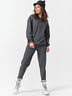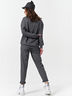 • Особенности: Костюм из фактурного трикотажа состоит из свитшота и брюк. Детали свитшота: горловина округлой формы, обработана бейкой, спущенный длинный рукав на манжете, притачная манжета по низу свитшота. Брюки прямого силуэта, притачной пояс, брючные карманы.