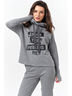 • Особенности: Костюм из футера состоящий из свитшота и брюк. Детали: Свитшот прямого силуэта с высоким воротником-стойкой, линия плеча спущенная, рукав длинный с отверстием под палец, по переду выполнен принт. Брюки с боковыми карманами, с манжетами по низу.