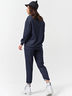 • Особенности: Костюм из фактурного трикотажа состоит из свитшота и брюк. Детали свитшота: горловина округлой формы, обработана бейкой, спущенный длинный рукав на манжете, притачная манжета по низу свитшота. Брюки прямого силуэта, притачной пояс, брючные карманы.