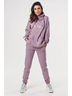 • Особенности: Костюм из футера состоит из свитшота и брюк. Детали свитшота: прямой силуэт, спущенная линия плеча, длинный рукав на манжете, капюшон с продетым толстым шнуром, принт из металлизированной фольги, накладной карман. Детали брюк: полуприлегающий силуэт, притачной пояс, брючные карманы, манжеты по низу брюк.