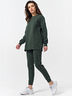 • Особенности: Костюм из плотного трикотажа в крапинку состоит из свитшота и брюк. Свитшот свободного силуэта, горловина обработана бейкой, рукав длинный со спущенной проймой, по низу изделия - манжета, разрезы в боковых швах, карманы в боковых швах. Брюки полуприлегающего силуэта, заужены книзу, на манжете.