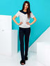 Стильный прогулочный костюм из двунитков, декорирован вставкой из люрекса на футболке и лампасами на брюках. Костюм выполнен в классическом стиле без манжетов на рукавах и брюках. Подойдет как для занятий спортом, так и для городских прогулок. Ярким акцентом модели является дизайнерское решение – оголенное плечо.