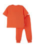 Костюм состоит из футболки и юрючек на манжетах. Футболка модели оверсайз, со спущенным плечом, с милым принтом. Комплект изготовлен из хлопкового футболочного трикотажа с эластаном. Отличная одежда для малышки в детский садик или для сна.