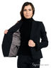 Приталенный пиджак застегивается на пуговицы. Отложной ворот с лацканами, два передних кармана, оригинальные декоративные сборки.