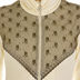 Велюровый костюм. Куртка приталенная, воротник-стойка со "сборкой". Контрастная по цвету кружевная кокетка.