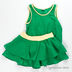 Верхний слой - расклешенная юбка, нижний слой-шорты. Пояс в виде широкой трикотажной резинки. Майка по нижнему краю посажена на трикотажную манжету.