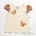 Приталенная футболка. Короткие рукава-фонарики. Полочка декорирована тканевыми бабочками.