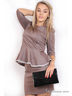 Костюм состоит из двух предметов: кофта и юбка. Кофта с рукавами 3/4 и округлым вырезом горловины. Изделия дополнено баской. Юбка облегающего фигуру кроя. Отличный вариант на каждый день.