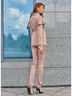 Элегантный костюм с брюками. Жакет с открытыми плечами и воланом по краю придает женственности, застегивается на потайные пуговицы. Брюки прямого кроя, заужены к низу.